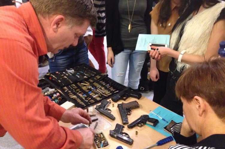 Nagy Attila igazságügyi fegyverszakértő a töltényhüvelyeken és lövedékeken keletkezett nyomok összehasonlításáról tartott előadásokat a folyamatosan érkező látogatók számára, melyeket fényképekkel illusztrált.